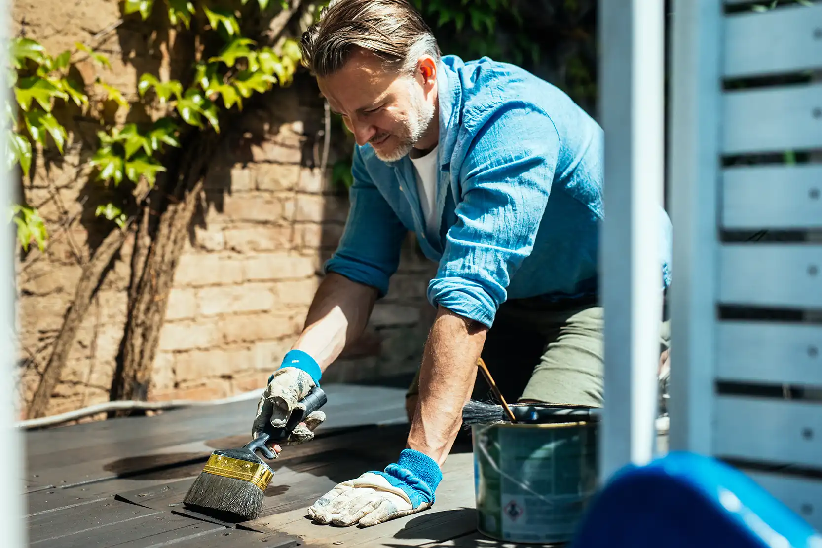 „Gut vorbereitet ist halb geschützt“, empfiehlt Holz-Berner. Bevor Farbe, Öl, Wachs oder Lasur aufgetragen werden, muss das Holz sauber, trocken und glatt sein. Alte Altbeschichtungen oder Verwitterungen abschleifen, ggf. auch Nut/ Feder-Verbindungen säubern. Danach eine passende Grundierung wählen – etwa Holzgrund oder Grundieröl mit Bläueschutz. Diese Schritte helfen, dass der Schutz tief einzieht und lange hält.